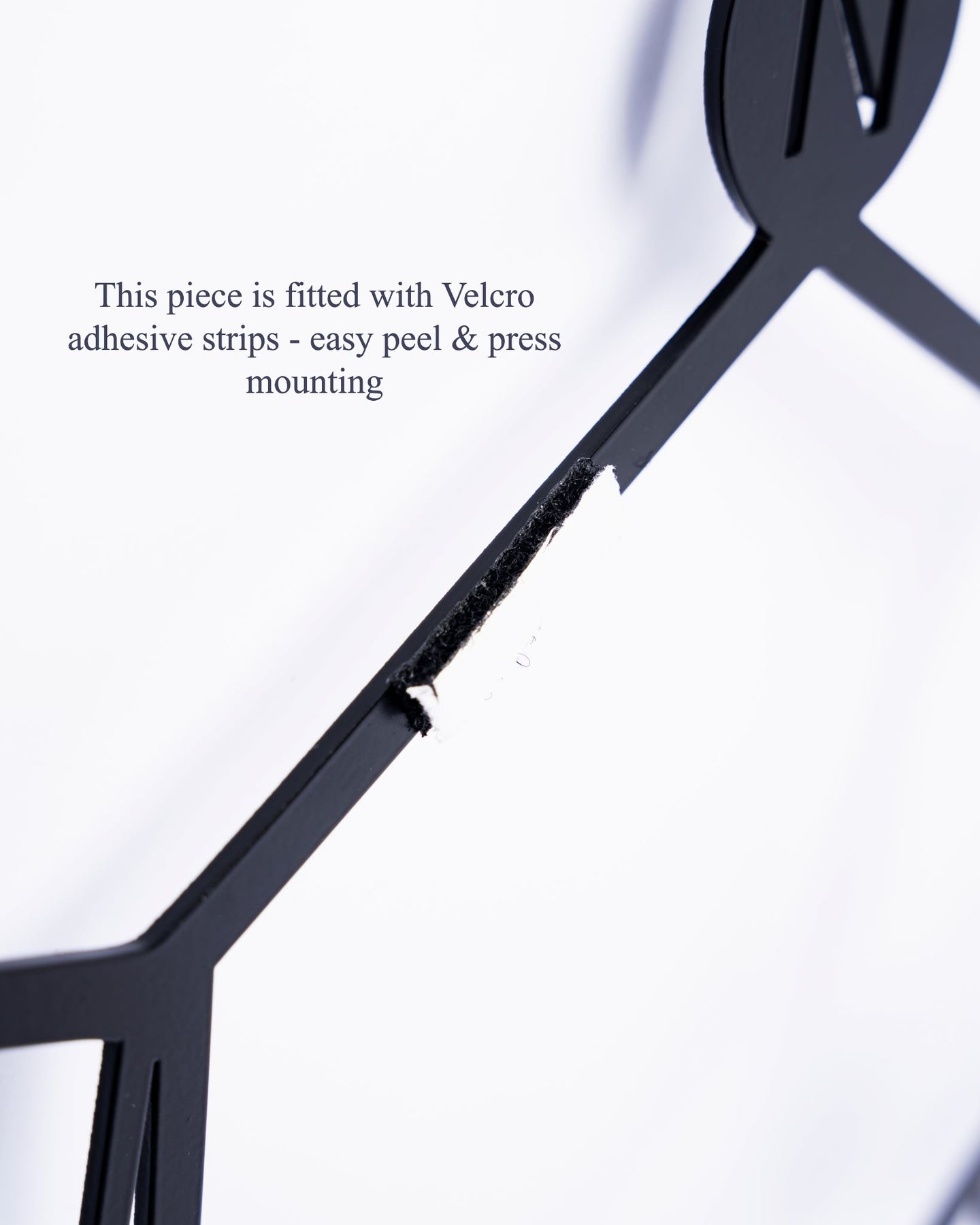 Velcro adhesive strip fitted to a black metal wall art piece
