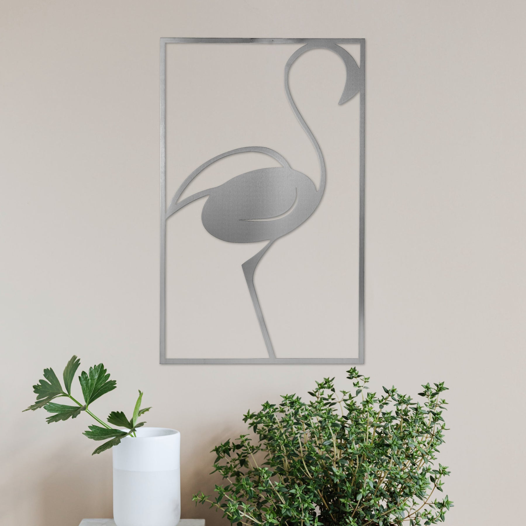 This Flamingo metal wall art features a sleek, minimalist design with a graceful flamingo silhouette elegantly cut from steel. Its clean, modern shape adds a stylish and subtle tropical touch to any space. Perfect for creating a relaxed, contemporary atmosphere. Works beautifully on its own or as part of a gallery wall.