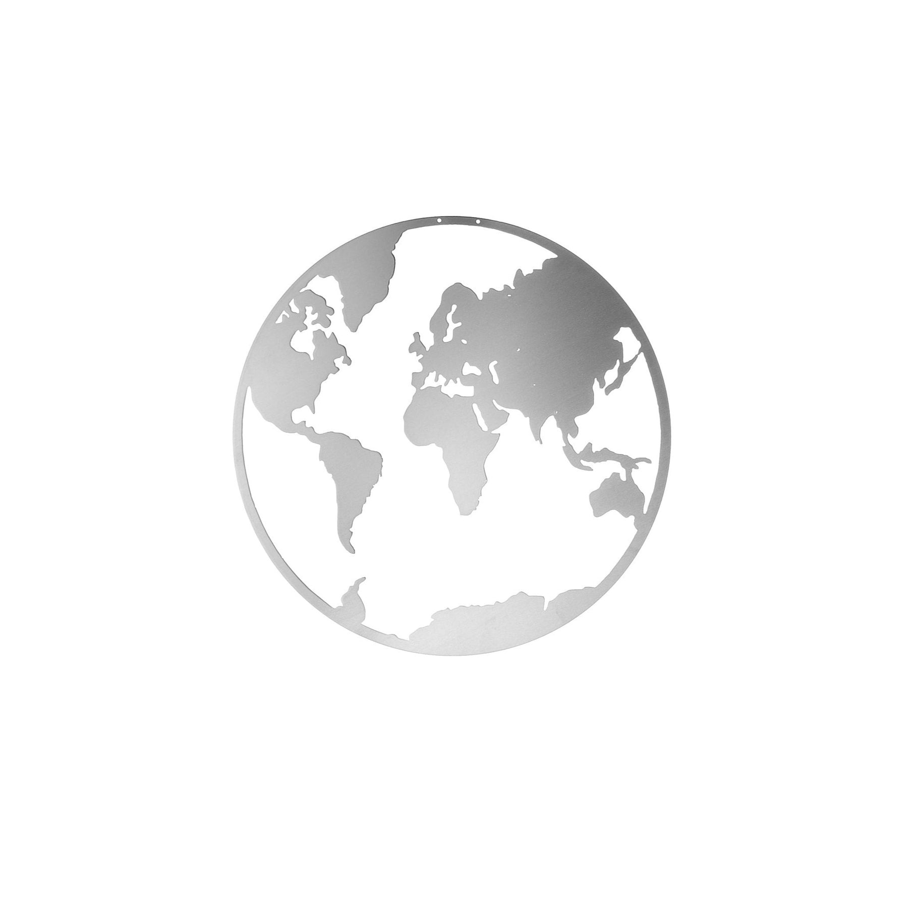 Explore the world from your wall with this Globe metal wall art. Its sleek, minimalist design features a detailed cut-out of the globe, combining modern style with a touch of wanderlust. Perfect as a standalone piece or part of a gallery display.