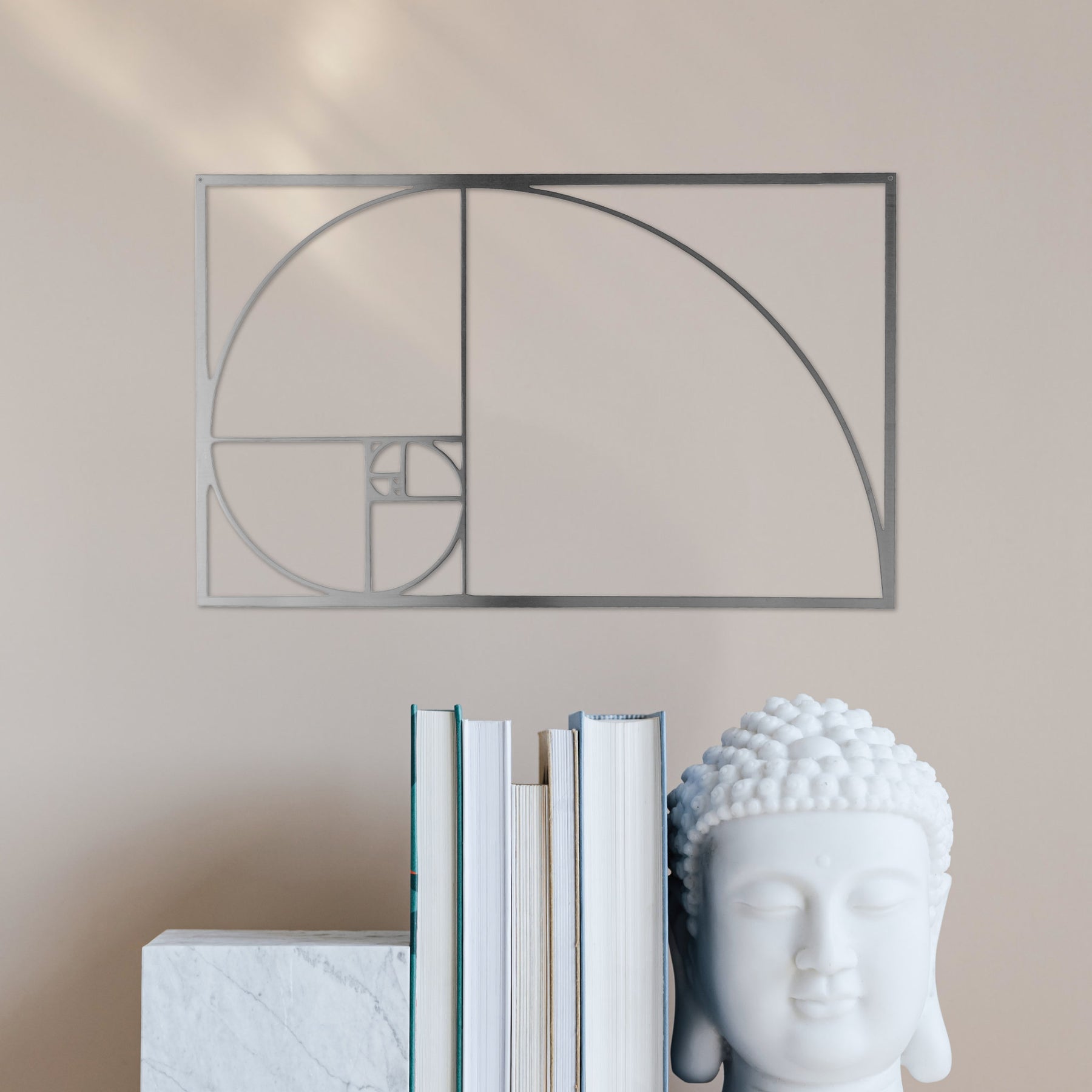 Bring balance and harmony into your space with this Golden Ratio metal wall art. Inspired by the timeless mathematical principle found in nature, art, and architecture, this minimalist design creates a calm yet striking visual statement. Perfect as a standalone feature or part of a curated gallery wall.