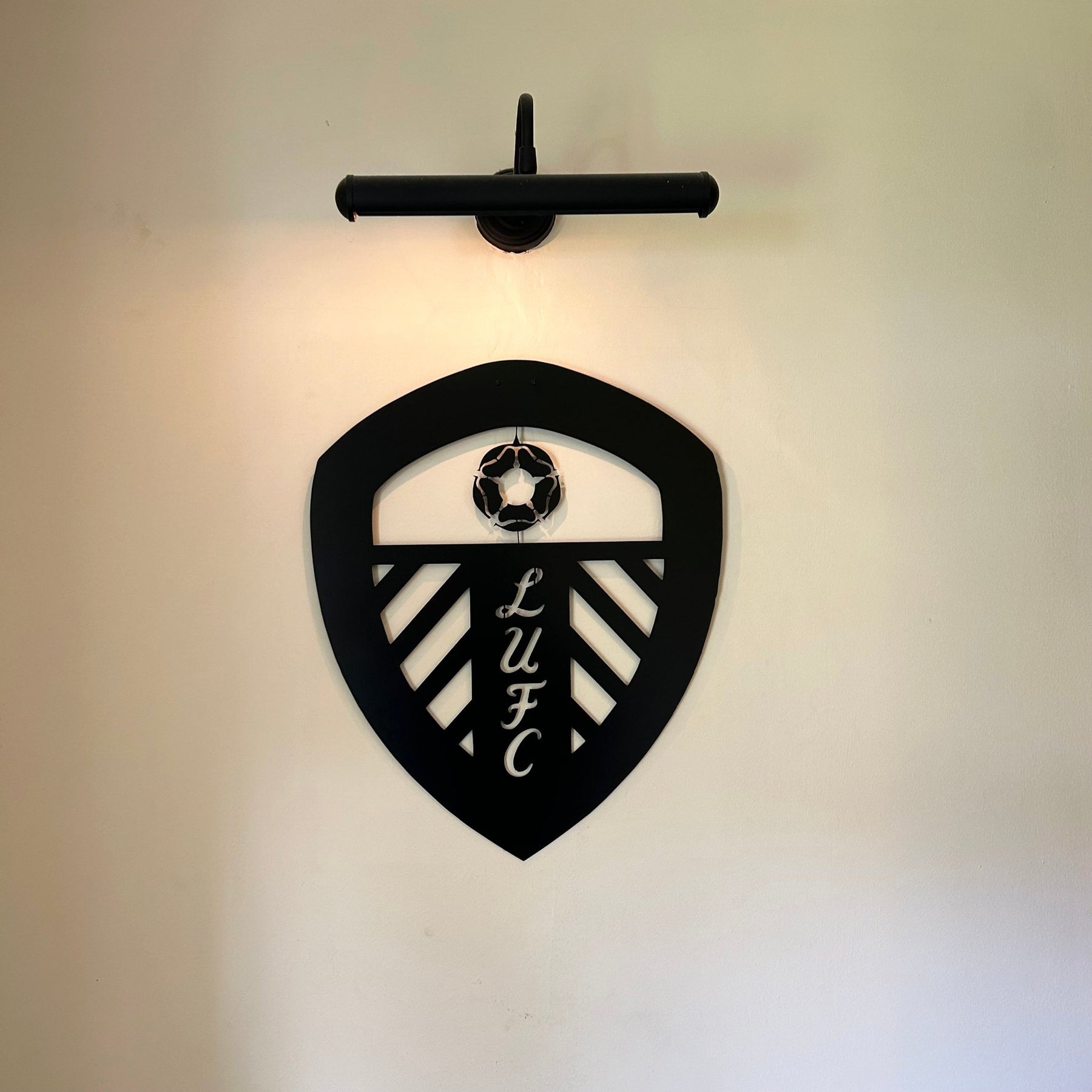 Show your pride for Leeds United F.C. with this striking metal wall art featuring the Leeds United crest. Perfect for fans of the Whites, this wall décor adds a bold, sporty, and modern touch to any space. Whether in your bedroom, office, fan cave, or man cave. Its minimalist silhouette captures the iconic club crest in detail, making it a must-have piece for Leeds United supporters, football fans & sports enthusiasts.