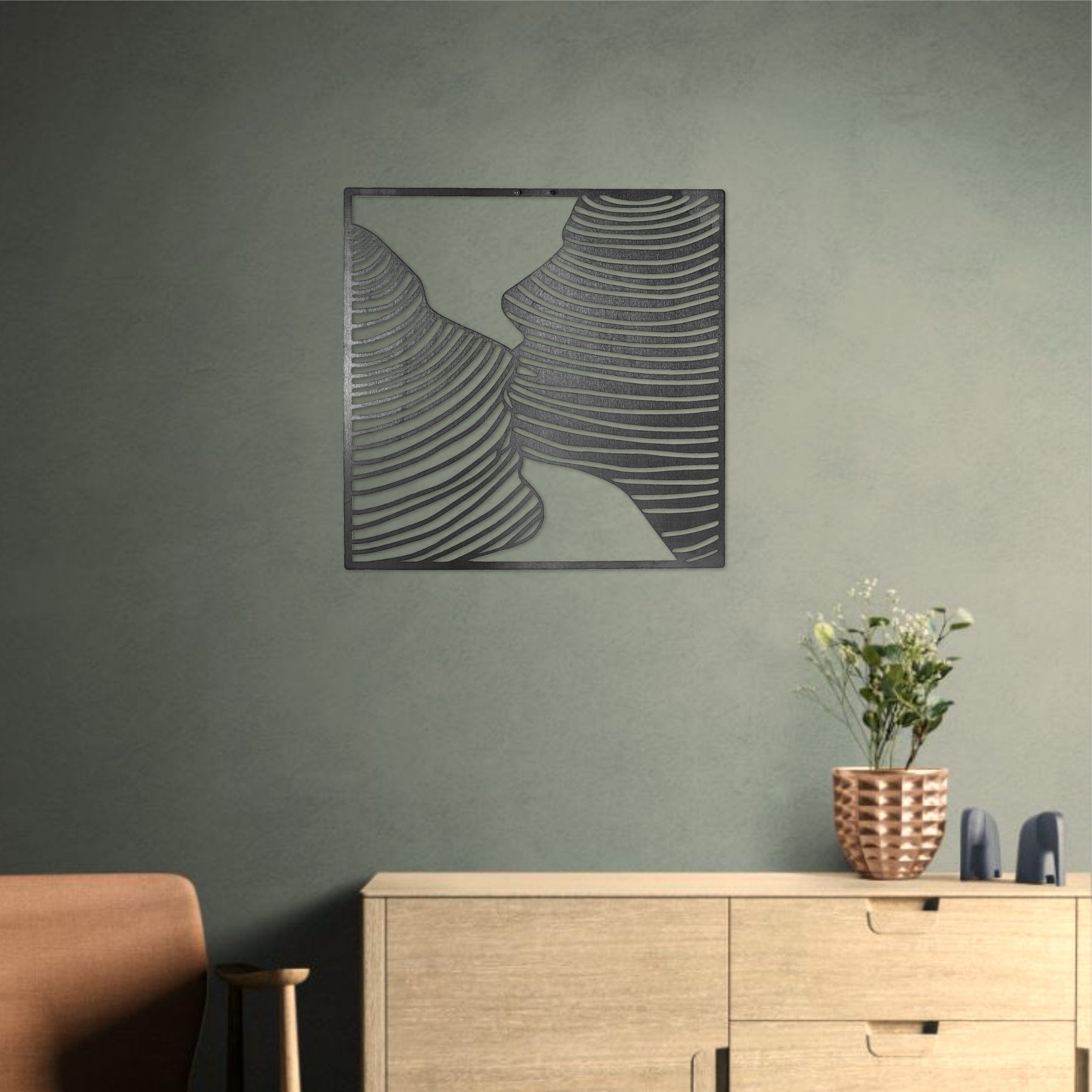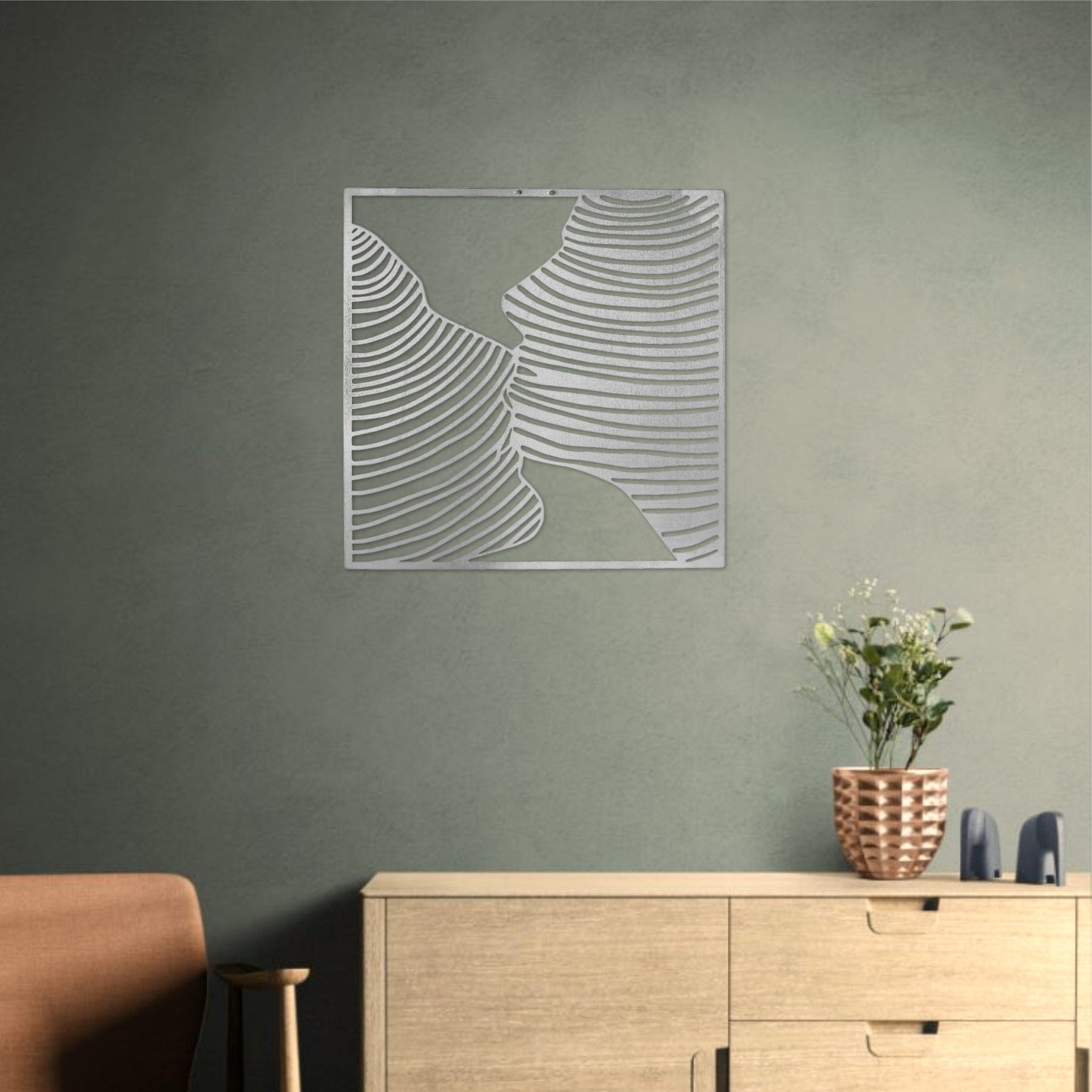 Capture a moment of intimacy and connection with this Proximity Metal Wall Art. Featuring the minimalist silhouette of two people about to kiss, this piece blends emotion and modern design to create a striking visual statement.