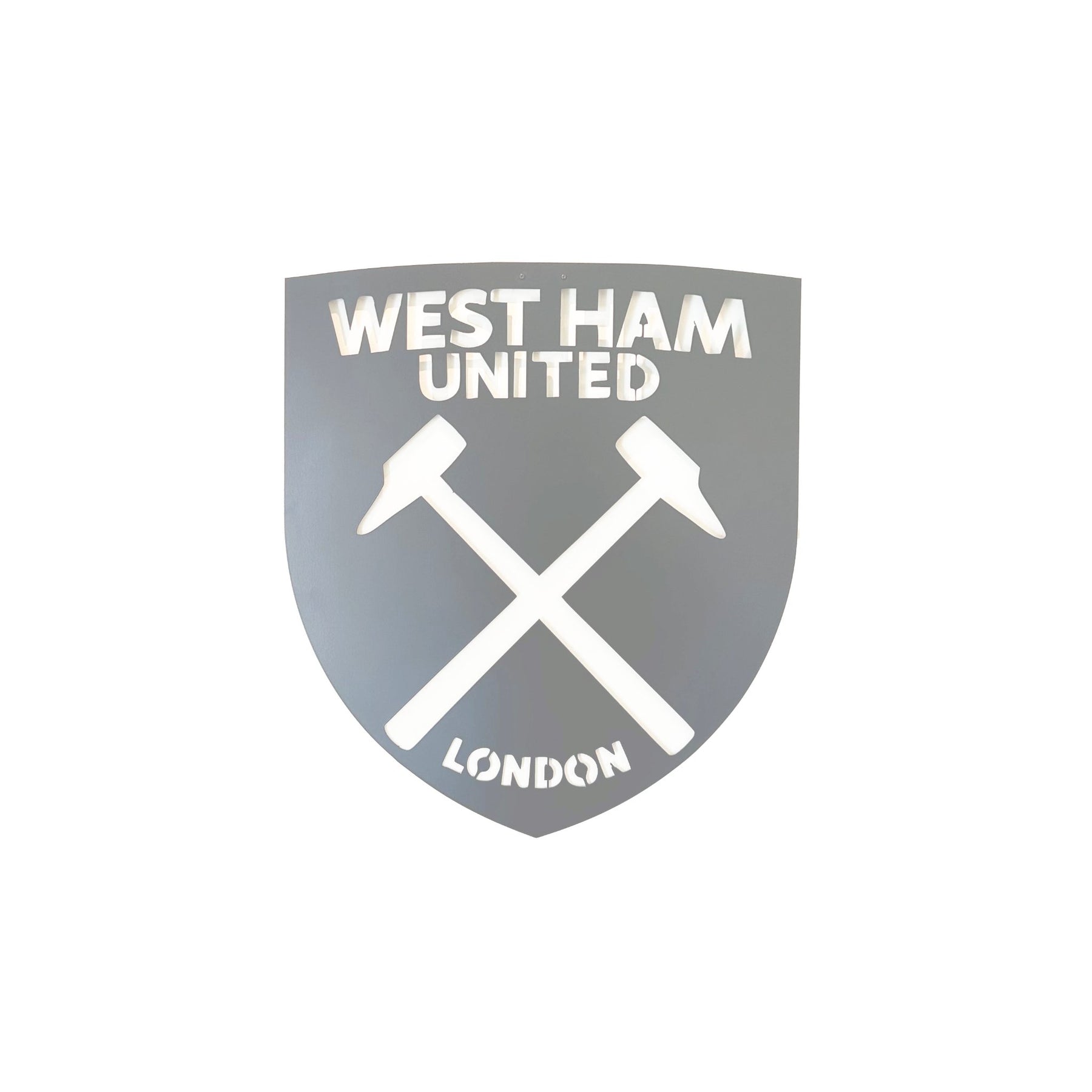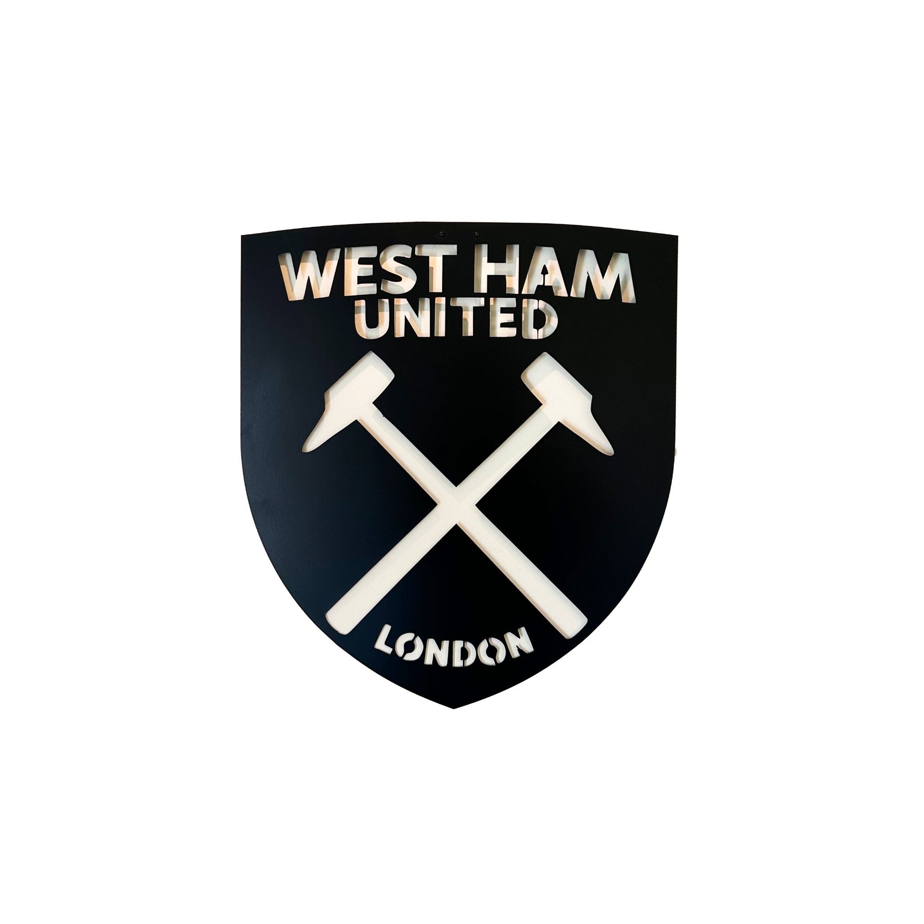 Precision-cut from premium steel, this West Ham wall art delivers a clean, minimalist look. It works perfectly in living rooms, offices, games rooms, home bars, or fan caves. The floating wall mount creates depth and shadow, giving the crest a strong, high-impact presence from every angle.